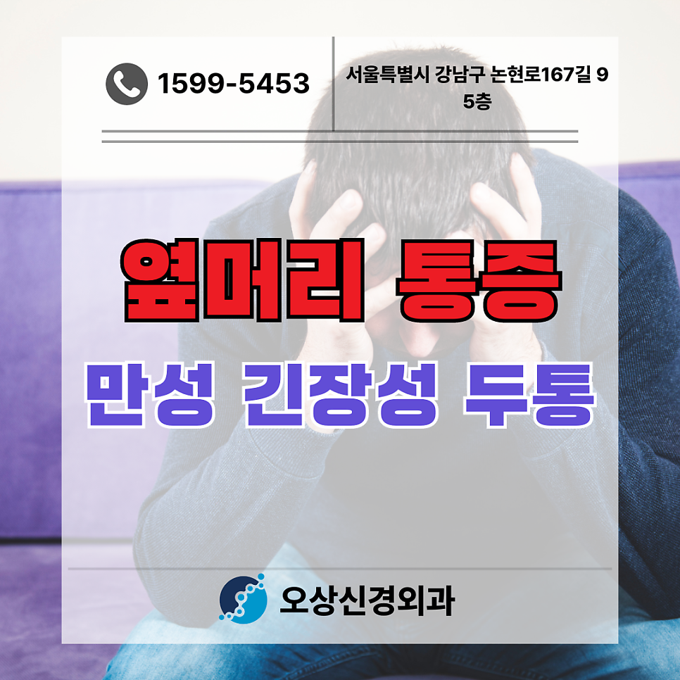 만성 긴장성 두통의 신호 평소에는 괜찮던 옆머리에서 갑자기 쥐어 짜듯이 아파오는 통증이 느껴진다면, 이는 만성 긴장성 두통의 신호일 수 있습니다.